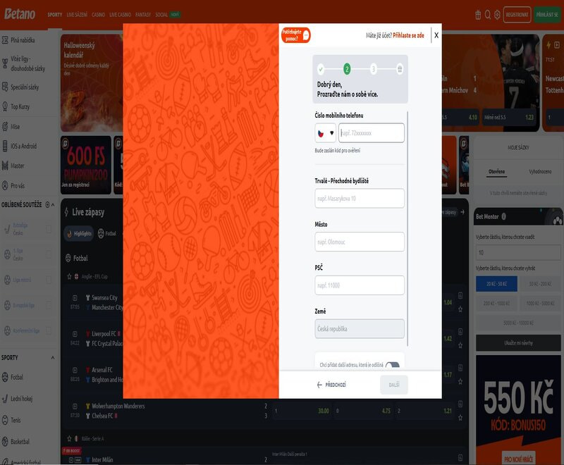 Registrace a ověření účtu v casinu Betano